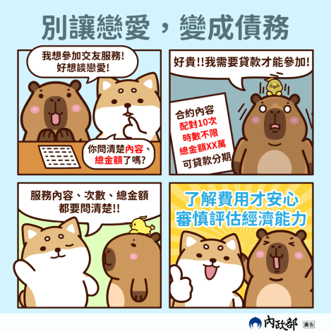 轉知內政部為提升全民對交友服務之正確消費觀念宣導~